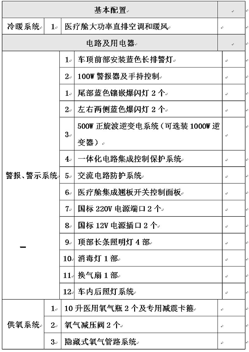 运输型配置清单