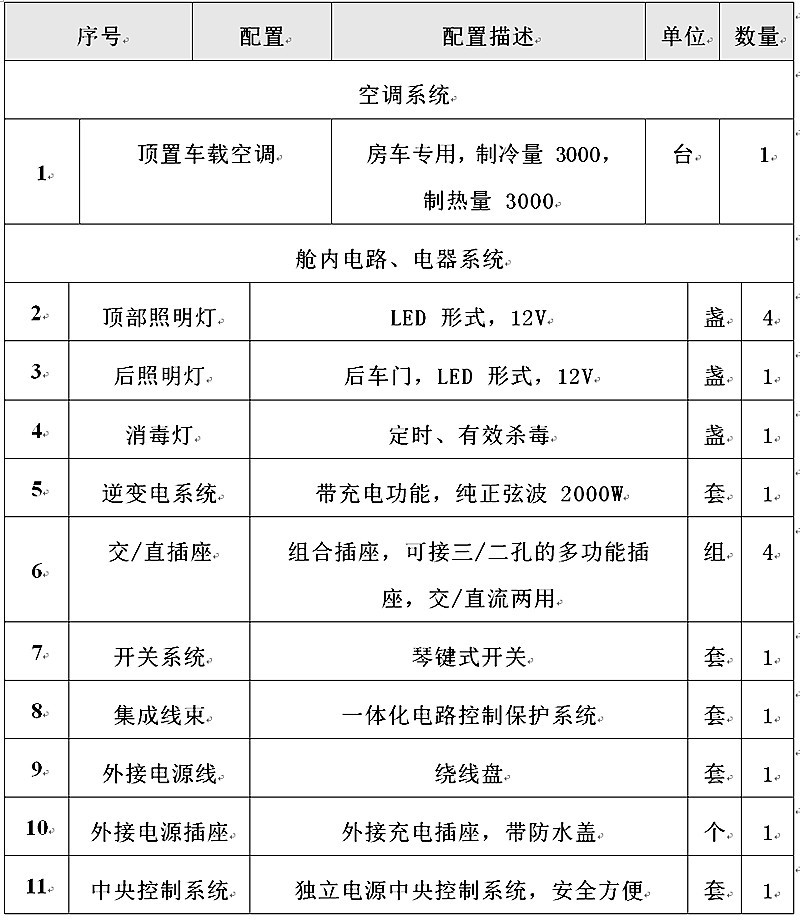 疫苗接种车配置清单